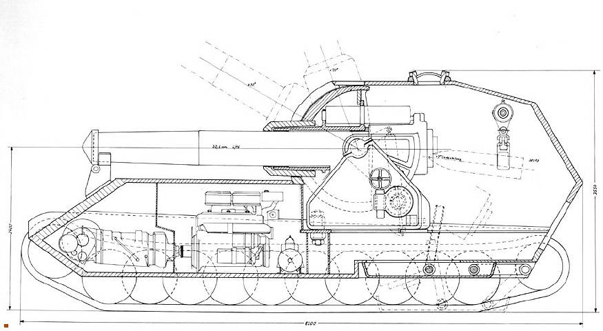120-tonowe działo samobieżne "Bär", armata 305mm. |